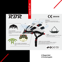 Los cascos RBR se someten a rigurosas pruebas de seguridad Europea según las normas CE EN1078 y todos están certificados con los estándares de calidad de la CE. En nuestros cascos hemos reducido el peso, la visera esta diseñada para protegerse de la luz del sol, ramas, etc., los ajustes del casco y hebillas de fácil manejo así como su interior anti-bacterias y con la malla anti-insectos hace que los cascos #RBR sean su mejor elección.